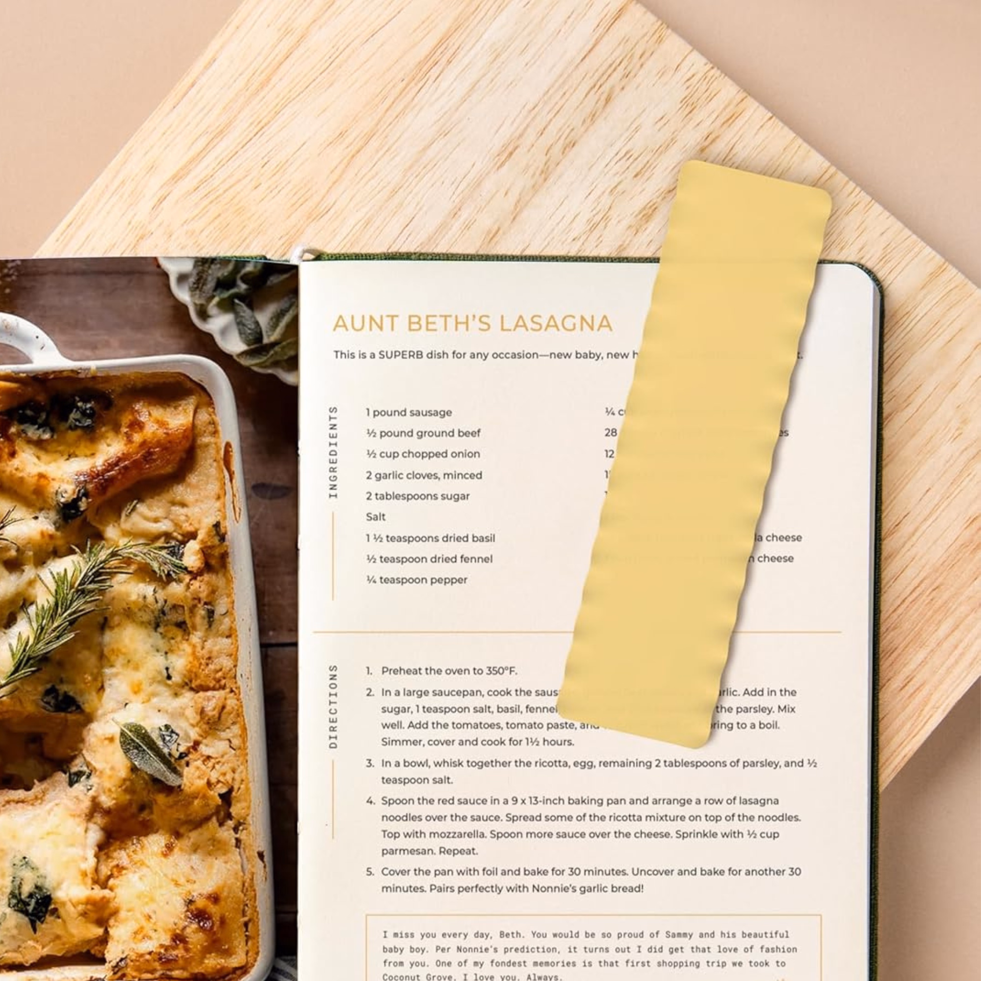 A flexible silicone bookmark shaped like a single lasagna noodle.