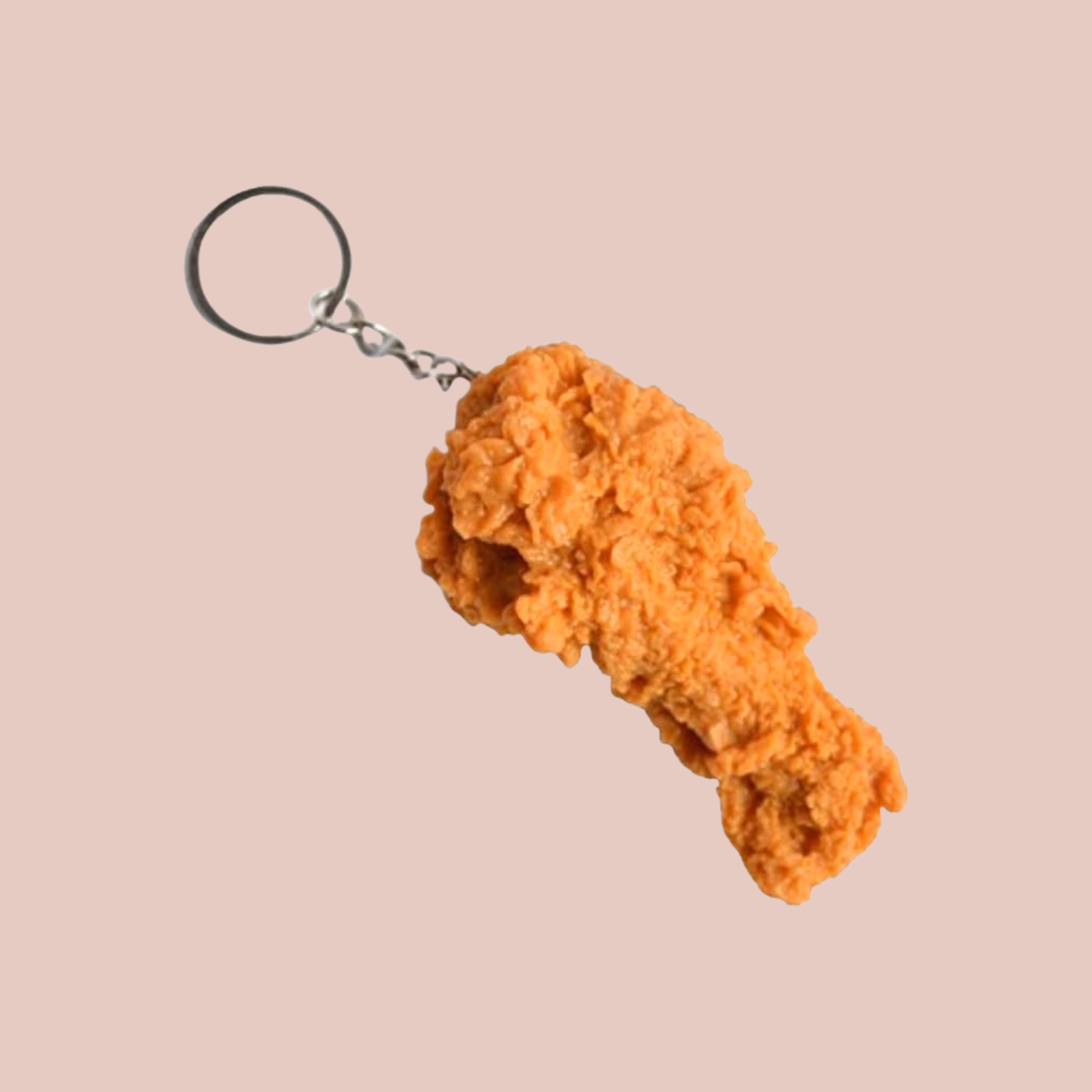 A crispy-looking fried chicken keychain that absolutely is not food.