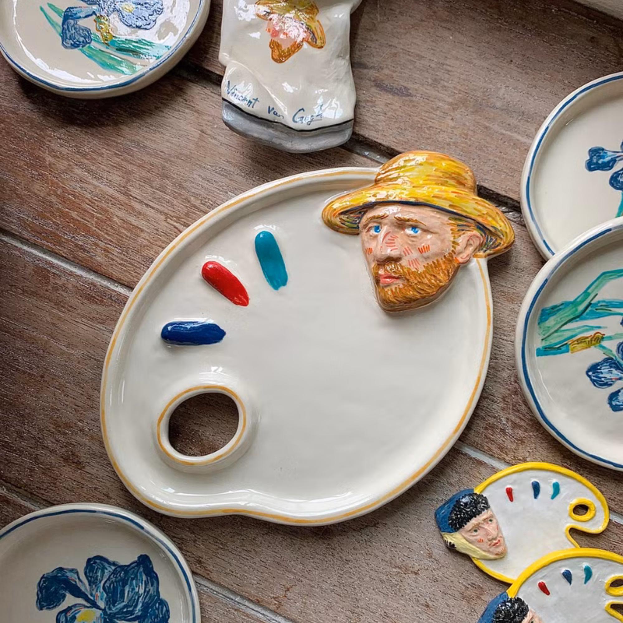 A hand-painted ceramic palette that looks like Van Gogh wandered into your house.
